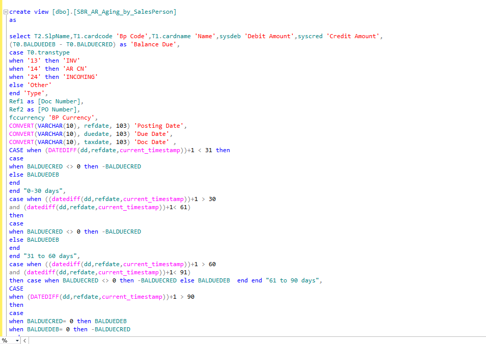 In this scenario, since he always wants the report running as of today’s date, we can just create a View with the Aging query. If a parameter was required (From and To dates) I would recommend to create a Stored Procedure.
