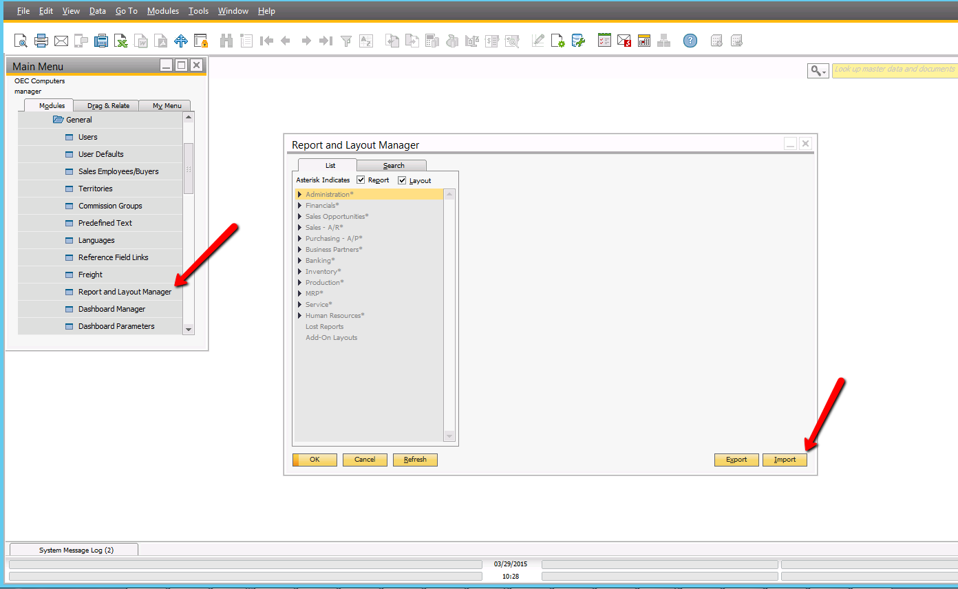 Once you have the .rpt file ready to go, you can import the file in SAP Business One or using the integration from CR: